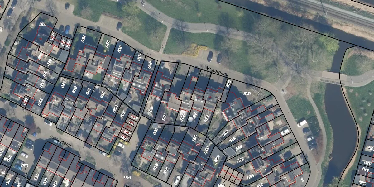 Gebruik de zoekbalk of klik op een perceel voor informatie over de adressen binnen dit perceel.