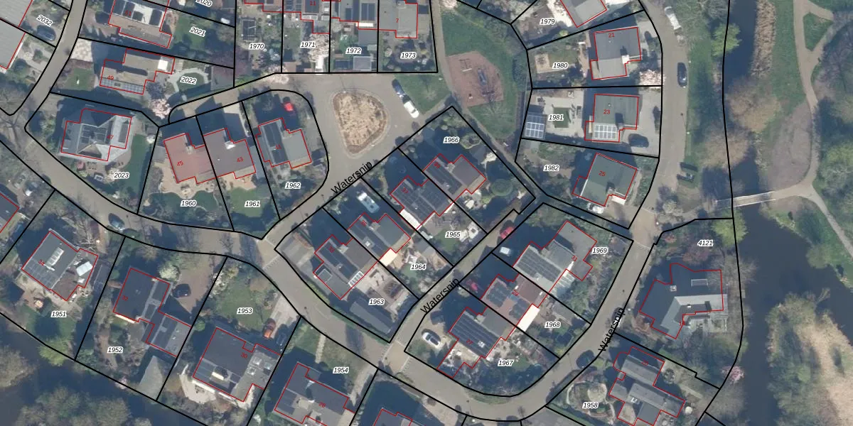 Het perceel waarop Watersnip 37 staat heeft een oppervlakte van 335 m². Dit is een groot perceel. De perceeloppervlakte wordt geregistreerd door het Kadaster. Gedetailleerde informatie over de maten van dit perceel kunt u vinden in het rapport Kadastrale kaart met maatvoering van Watersnip 37.