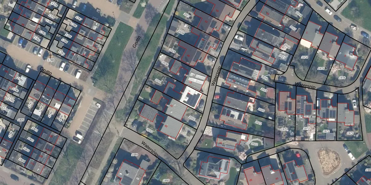 Het perceel waarop Watersnip 44 staat heeft een oppervlakte van 320 m². Dit is een groot perceel. De perceeloppervlakte wordt geregistreerd door het Kadaster. Gedetailleerde informatie over de maten van dit perceel kunt u vinden in het rapport Kadastrale kaart met maatvoering van Watersnip 44.