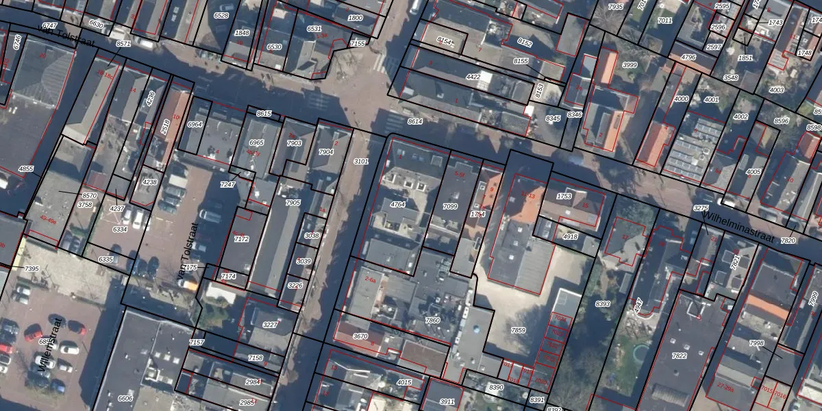 Het perceel waarop Wilhelminastraat 3-d staat heeft een oppervlakte van 472 m². Dit is een groot perceel. De perceeloppervlakte wordt geregistreerd door het Kadaster. Gedetailleerde informatie over de maten van dit perceel kunt u vinden in het rapport Kadastrale kaart met maatvoering van Wilhelminastraat 3-d.
