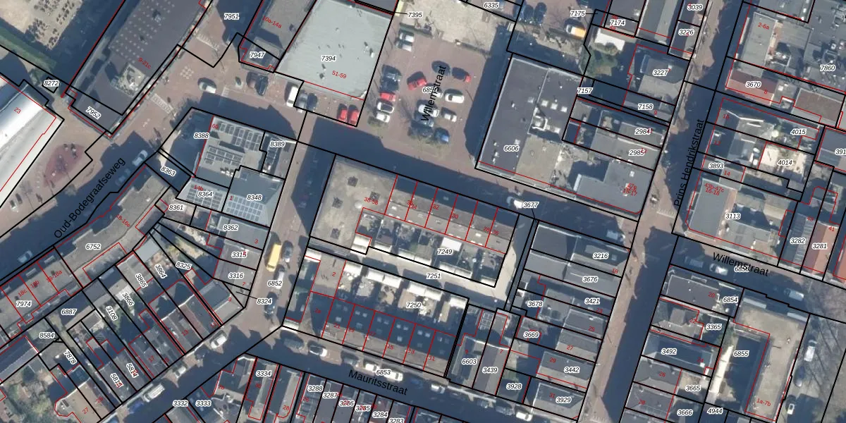 Het perceel waarop Willemstraat 34 staat heeft een oppervlakte van 865 m². Dit is een groot perceel. De perceeloppervlakte wordt geregistreerd door het Kadaster. Gedetailleerde informatie over de maten van dit perceel kunt u vinden in het rapport Kadastrale kaart met maatvoering van Willemstraat 34.