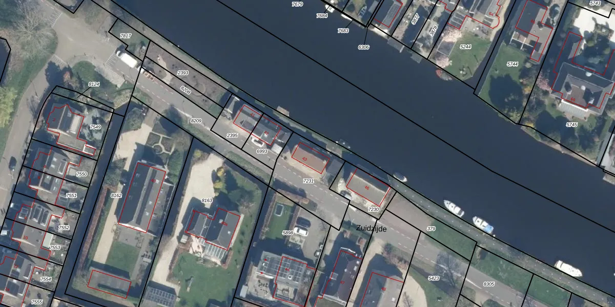 Zuidzijde 43 is gelegen op kadastraal perceel BDG00C7231. Deze kadastrale aanduiding is uniek en wordt gebruikt door het Kadaster om eigendomsrechten en andere zakelijke rechten vast te leggen. Het perceel maakt onderdeel uit van de kadastrale gemeente Bodegraven.