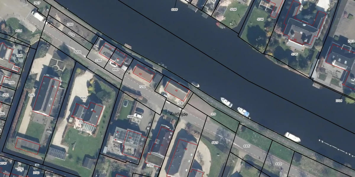 Zuidzijde 46 is gelegen op kadastraal perceel BDG00C7230. Deze kadastrale aanduiding is uniek en wordt gebruikt door het Kadaster om eigendomsrechten en andere zakelijke rechten vast te leggen. Het perceel maakt onderdeel uit van de kadastrale gemeente Bodegraven.
