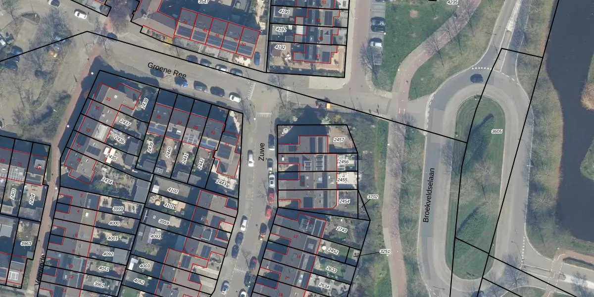 Gebruik de zoekbalk of klik op een perceel voor informatie over de adressen binnen dit perceel.