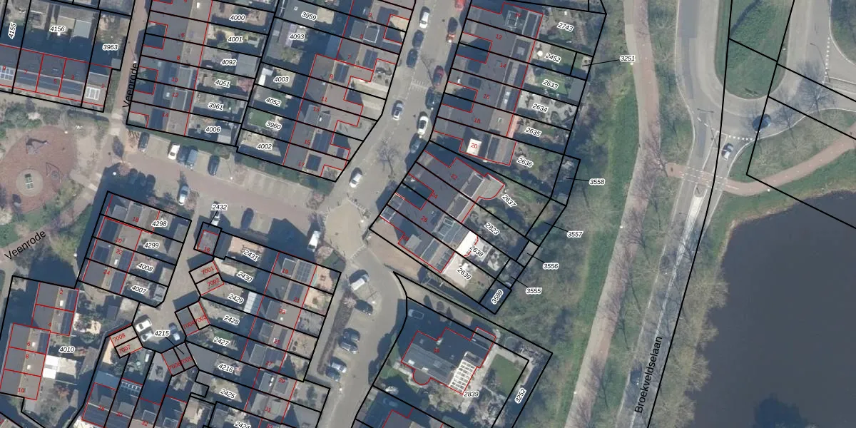 Gebruik de zoekbalk of klik op een perceel voor informatie over de adressen binnen dit perceel.