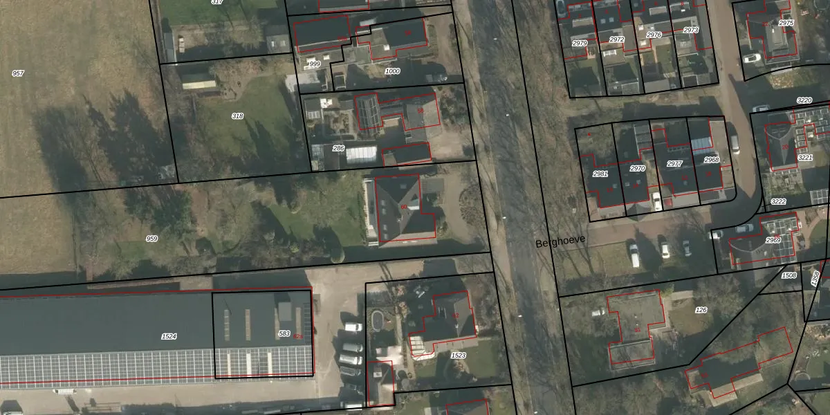 Het perceel waarop Bergstraat 60 staat heeft een oppervlakte van 3066 m². Dit is een zeer groot perceel. De perceeloppervlakte wordt geregistreerd door het Kadaster. Gedetailleerde informatie over de maten van dit perceel kunt u vinden in het rapport Kadastrale kaart met maatvoering van Bergstraat 60.