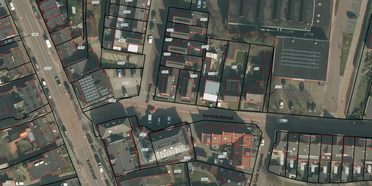 Gebruik de zoekbalk of klik op een perceel voor informatie over de adressen binnen dit perceel.