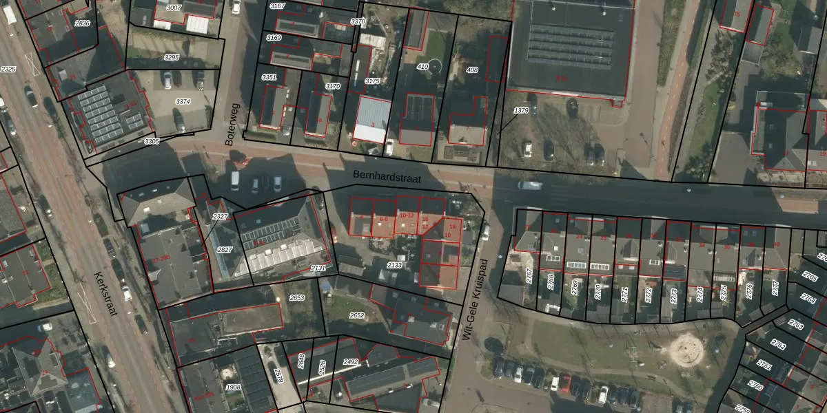Bernhardstraat 12 is gelegen op kadastraal perceel BKL05I2133. Deze kadastrale aanduiding is uniek en wordt gebruikt door het Kadaster om eigendomsrechten en andere zakelijke rechten vast te leggen. Het perceel maakt onderdeel uit van de kadastrale gemeente Boekel.