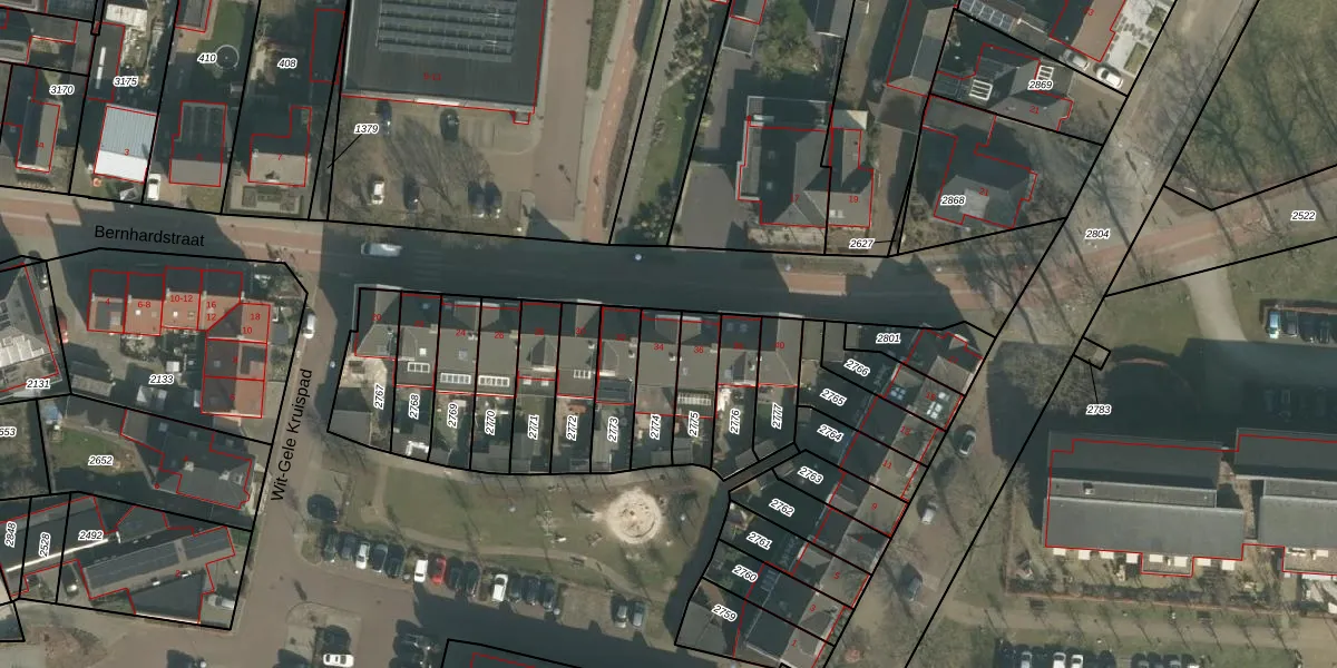 Bernhardstraat 34 is gelegen op kadastraal perceel BKL05I2774. Deze kadastrale aanduiding is uniek en wordt gebruikt door het Kadaster om eigendomsrechten en andere zakelijke rechten vast te leggen. Het perceel maakt onderdeel uit van de kadastrale gemeente Boekel.