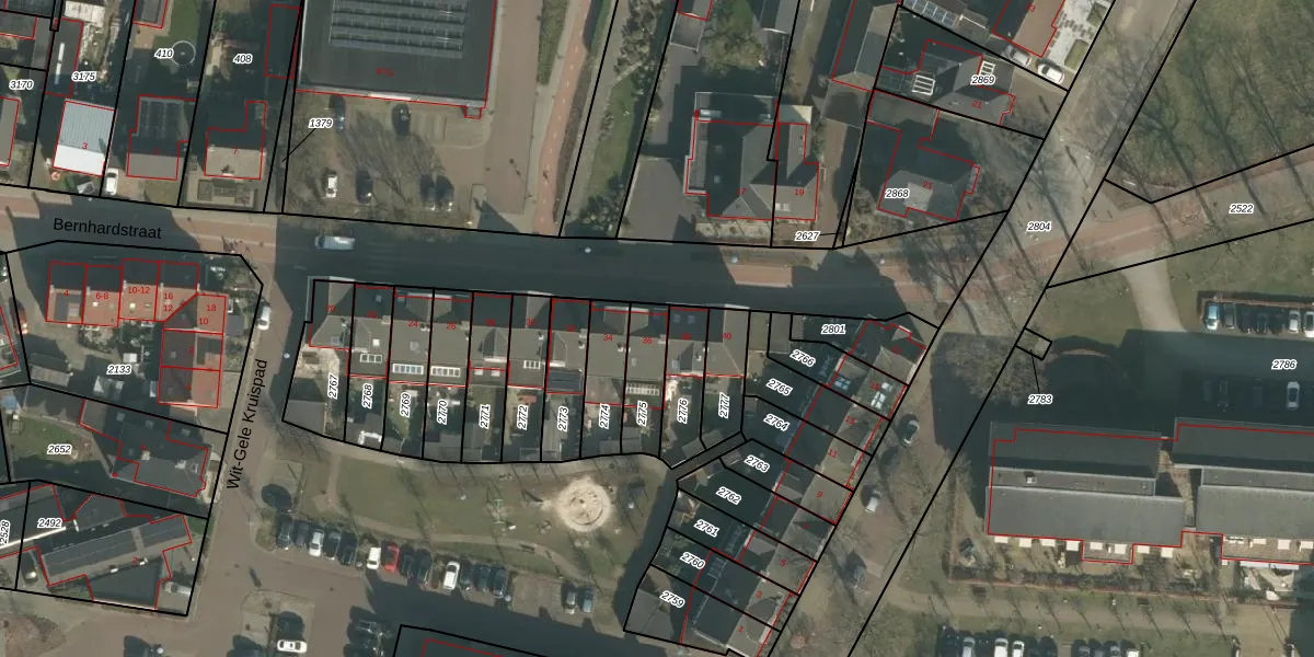 Bernhardstraat 36 is gelegen op kadastraal perceel BKL05I2775. Deze kadastrale aanduiding is uniek en wordt gebruikt door het Kadaster om eigendomsrechten en andere zakelijke rechten vast te leggen. Het perceel maakt onderdeel uit van de kadastrale gemeente Boekel.