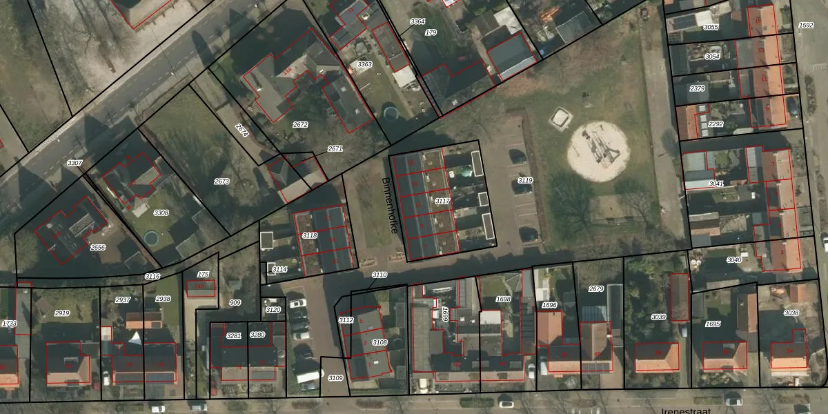 Het perceel waarop Binnenhofke 11 staat heeft een oppervlakte van 574 m². Dit is een groot perceel. De perceeloppervlakte wordt geregistreerd door het Kadaster. Gedetailleerde informatie over de maten van dit perceel kunt u vinden in het rapport Kadastrale kaart met maatvoering van Binnenhofke 11.