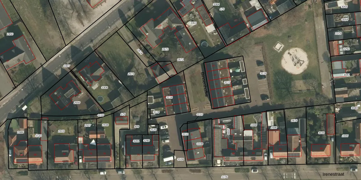 Het perceel waarop Binnenhofke 17 staat heeft een oppervlakte van 431 m². Dit is een groot perceel. De perceeloppervlakte wordt geregistreerd door het Kadaster. Gedetailleerde informatie over de maten van dit perceel kunt u vinden in het rapport Kadastrale kaart met maatvoering van Binnenhofke 17.