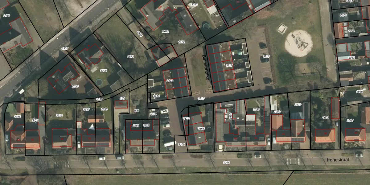 Het perceel waarop Binnenhofke 21 staat heeft een oppervlakte van 431 m². Dit is een groot perceel. De perceeloppervlakte wordt geregistreerd door het Kadaster. Gedetailleerde informatie over de maten van dit perceel kunt u vinden in het rapport Kadastrale kaart met maatvoering van Binnenhofke 21.
