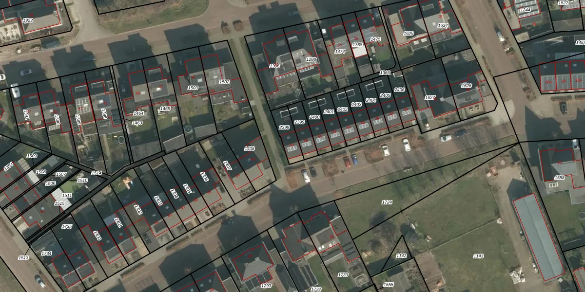 Gebruik de zoekbalk of klik op een perceel voor informatie over de adressen binnen dit perceel.