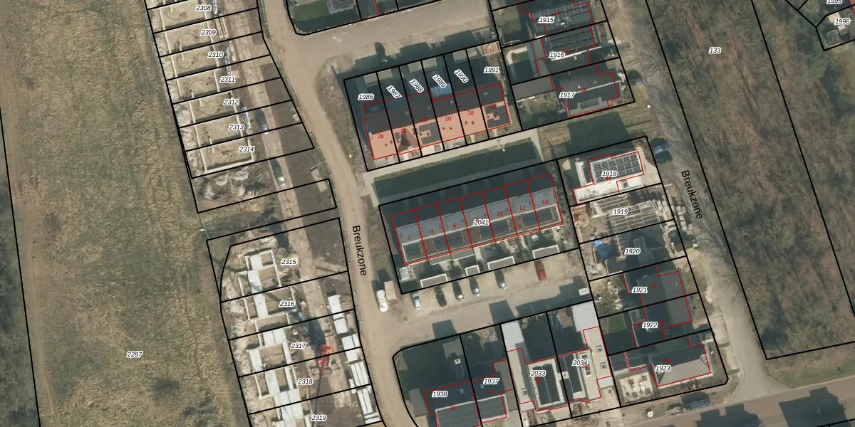 Het perceel waarop Breukzone 4 staat heeft een oppervlakte van 920 m². Dit is een groot perceel. De perceeloppervlakte wordt geregistreerd door het Kadaster. Gedetailleerde informatie over de maten van dit perceel kunt u vinden in het rapport Kadastrale kaart met maatvoering van Breukzone 4.