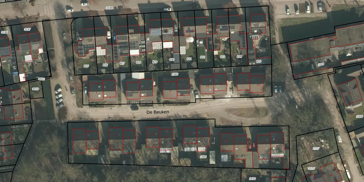 Het perceel waarop De Beuken 11 staat heeft een oppervlakte van 1823 m². Dit is een zeer groot perceel. De perceeloppervlakte wordt geregistreerd door het Kadaster. Gedetailleerde informatie over de maten van dit perceel kunt u vinden in het rapport Kadastrale kaart met maatvoering van De Beuken 11.