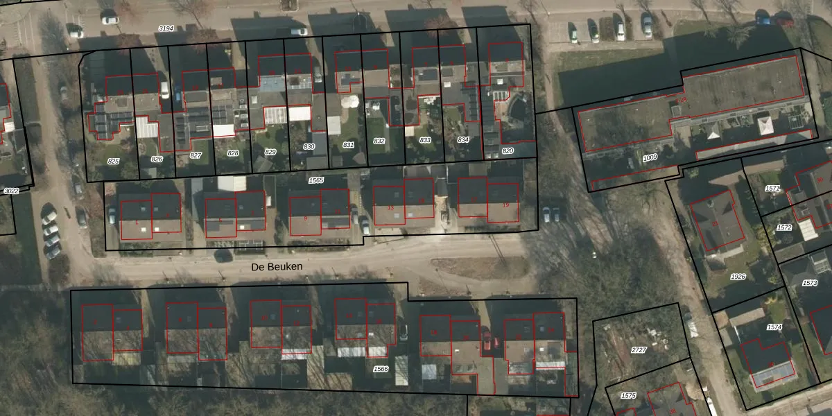 De Beuken 15 is gelegen op kadastraal perceel BKL05I1565. Deze kadastrale aanduiding is uniek en wordt gebruikt door het Kadaster om eigendomsrechten en andere zakelijke rechten vast te leggen. Het perceel maakt onderdeel uit van de kadastrale gemeente Boekel.