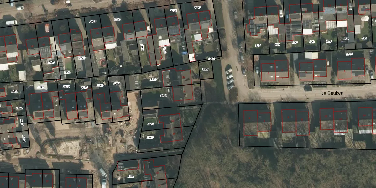 Het perceel waarop De Eiken 31 staat heeft een oppervlakte van 356 m². Dit is een groot perceel. De perceeloppervlakte wordt geregistreerd door het Kadaster. Gedetailleerde informatie over de maten van dit perceel kunt u vinden in het rapport Kadastrale kaart met maatvoering van De Eiken 31.
