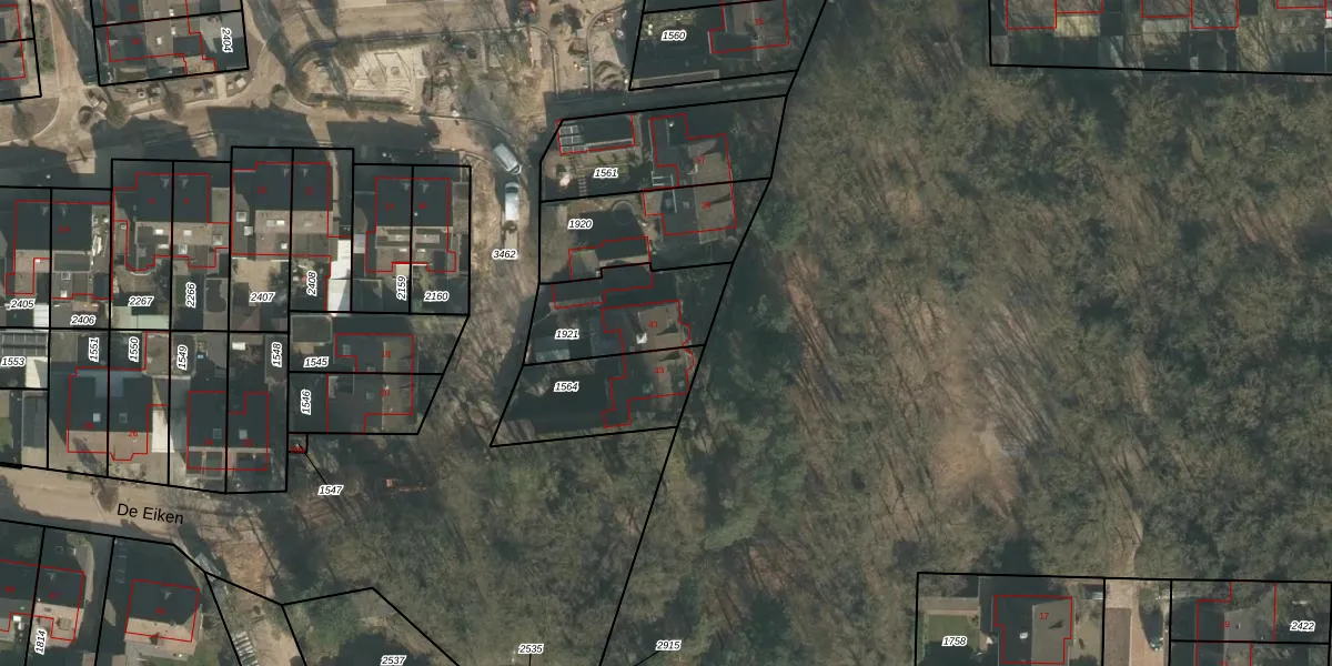 Het perceel waarop De Eiken 41 staat heeft een oppervlakte van 351 m². Dit is een groot perceel. De perceeloppervlakte wordt geregistreerd door het Kadaster. Gedetailleerde informatie over de maten van dit perceel kunt u vinden in het rapport Kadastrale kaart met maatvoering van De Eiken 41.