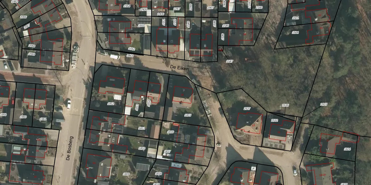 De Eiken 45 is gelegen op kadastraal perceel BKL05I1815. Deze kadastrale aanduiding is uniek en wordt gebruikt door het Kadaster om eigendomsrechten en andere zakelijke rechten vast te leggen. Het perceel maakt onderdeel uit van de kadastrale gemeente Boekel.