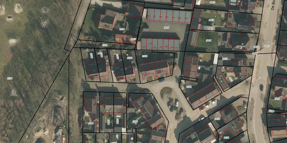 Het adres ligt op het perceel BKL05-I-2162, dat zich in de kadastrale gemeente Boekel bevindt. Het perceel is 505 m² groot. Dat is kleiner dan de gemiddelde perceeloppervlakte in Boekel, dat op 4719,73 m² ligt. De grootste perceeloppervlakte in de kadastrale gemeente is 18,0 ha. De kleinste oppervlakte bedraagt 0 m². Er zijn 4 adressen aanwezig op het perceel. De laatste wijziging in het de Basisregistratie Kadaster (BRK) was op 24-08-2010.