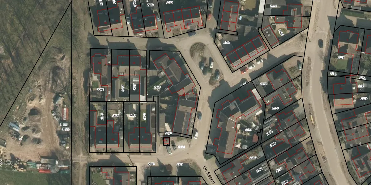 Het perceel waarop De Essen 45 staat heeft een oppervlakte van 925 m². Dit is een groot perceel. De perceeloppervlakte wordt geregistreerd door het Kadaster. Gedetailleerde informatie over de maten van dit perceel kunt u vinden in het rapport Kadastrale kaart met maatvoering van De Essen 45.