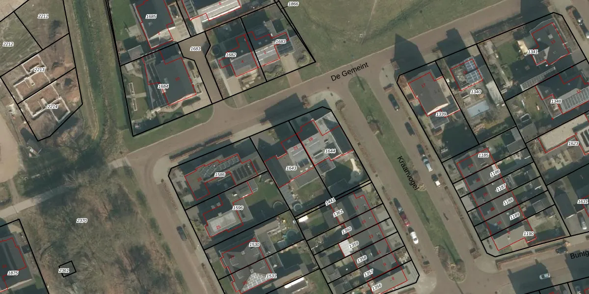 Het perceel waarop De Gemeint 21 staat heeft een oppervlakte van 442 m². Dit is een groot perceel. De perceeloppervlakte wordt geregistreerd door het Kadaster. Gedetailleerde informatie over de maten van dit perceel kunt u vinden in het rapport Kadastrale kaart met maatvoering van De Gemeint 21.