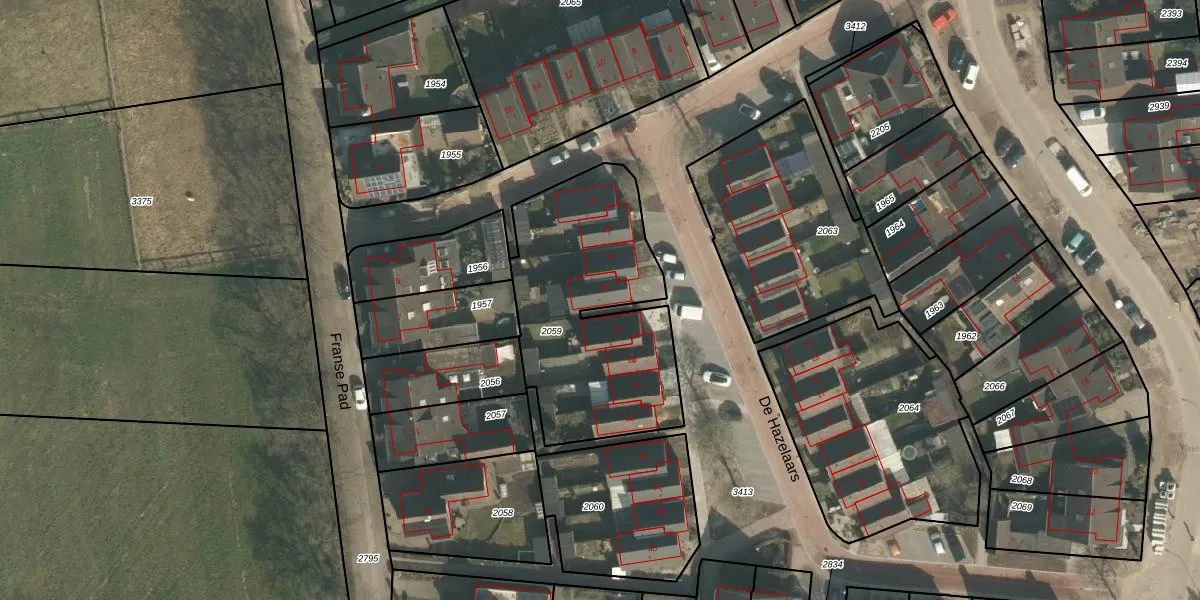 Het perceel waarop De Hazelaars 24 staat heeft een oppervlakte van 1002 m². Dit is een zeer groot perceel. De perceeloppervlakte wordt geregistreerd door het Kadaster. Gedetailleerde informatie over de maten van dit perceel kunt u vinden in het rapport Kadastrale kaart met maatvoering van De Hazelaars 24.