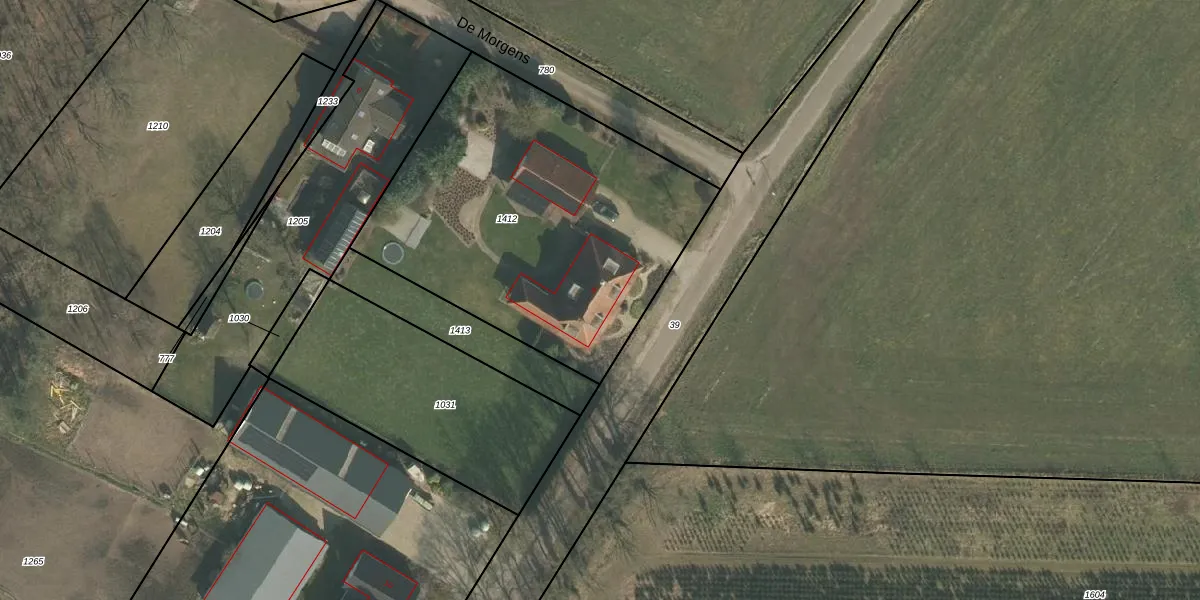 Het perceel waarop De Morgens 8 staat heeft een oppervlakte van 1825 m². Dit is een zeer groot perceel. De perceeloppervlakte wordt geregistreerd door het Kadaster. Gedetailleerde informatie over de maten van dit perceel kunt u vinden in het rapport Kadastrale kaart met maatvoering van De Morgens 8.