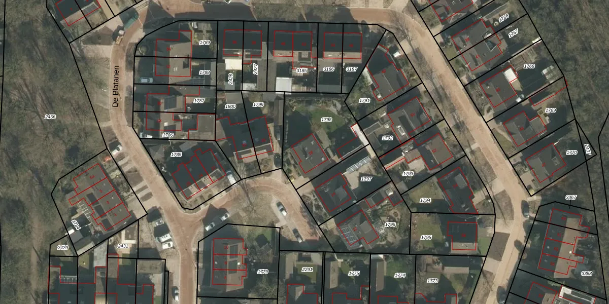 Het perceel waarop De Platanen 16 staat heeft een oppervlakte van 631 m². Dit is een groot perceel. De perceeloppervlakte wordt geregistreerd door het Kadaster. Gedetailleerde informatie over de maten van dit perceel kunt u vinden in het rapport Kadastrale kaart met maatvoering van De Platanen 16.