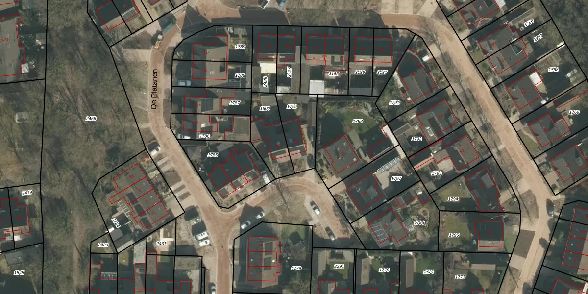 Het perceel waarop De Platanen 18 staat heeft een oppervlakte van 284 m². Dit is een middelgroot perceel. De perceeloppervlakte wordt geregistreerd door het Kadaster. Gedetailleerde informatie over de maten van dit perceel kunt u vinden in het rapport Kadastrale kaart met maatvoering van De Platanen 18.