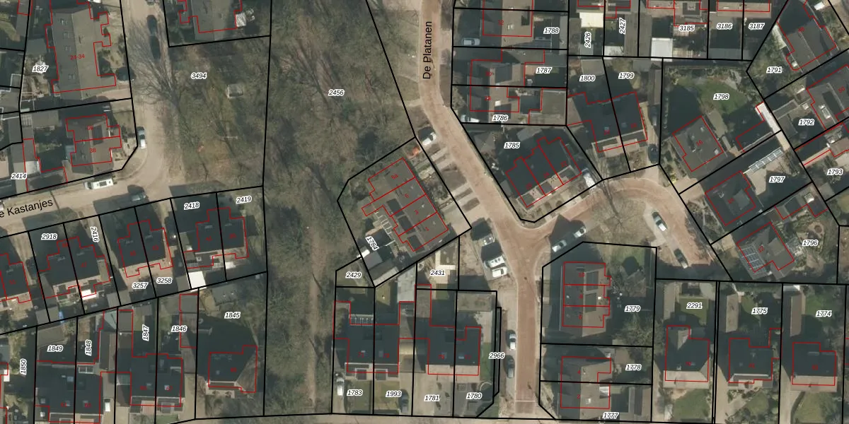 Het perceel waarop De Platanen 3 staat heeft een oppervlakte van 622 m². Dit is een groot perceel. De perceeloppervlakte wordt geregistreerd door het Kadaster. Gedetailleerde informatie over de maten van dit perceel kunt u vinden in het rapport Kadastrale kaart met maatvoering van De Platanen 3.