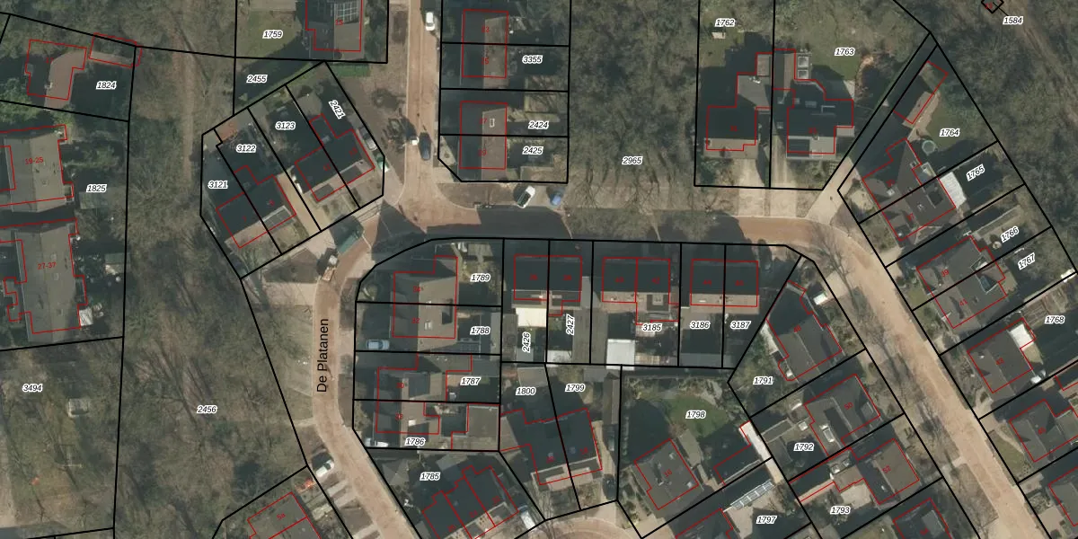 Het perceel waarop De Platanen 36 staat heeft een oppervlakte van 192 m². Dit is een middelgroot perceel. De perceeloppervlakte wordt geregistreerd door het Kadaster. Gedetailleerde informatie over de maten van dit perceel kunt u vinden in het rapport Kadastrale kaart met maatvoering van De Platanen 36.