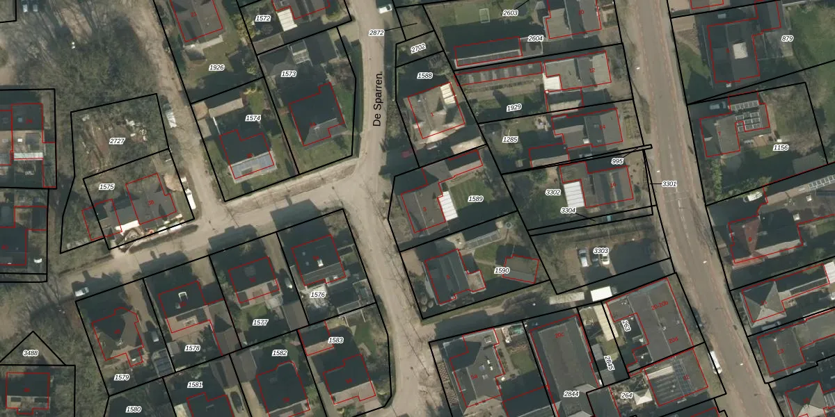 Het perceel waarop De Sparren 3 staat heeft een oppervlakte van 499 m². Dit is een groot perceel. De perceeloppervlakte wordt geregistreerd door het Kadaster. Gedetailleerde informatie over de maten van dit perceel kunt u vinden in het rapport Kadastrale kaart met maatvoering van De Sparren 3.