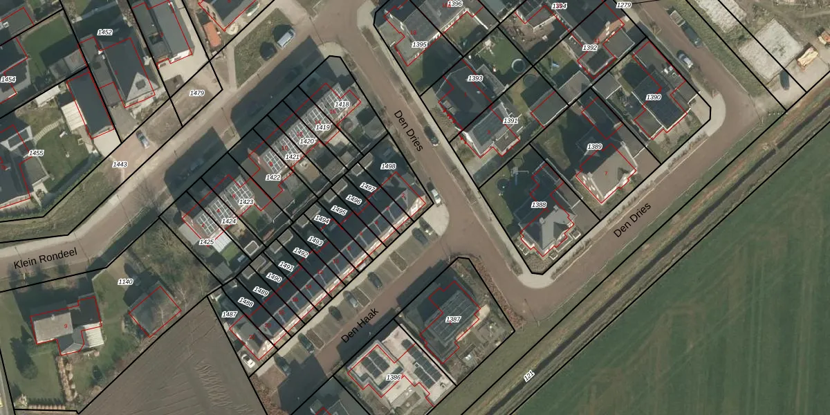 Het perceel waarop Den Dries 2 staat heeft een oppervlakte van 166 m². Dit is een middelgroot perceel. De perceeloppervlakte wordt geregistreerd door het Kadaster. Gedetailleerde informatie over de maten van dit perceel kunt u vinden in het rapport Kadastrale kaart met maatvoering van Den Dries 2.