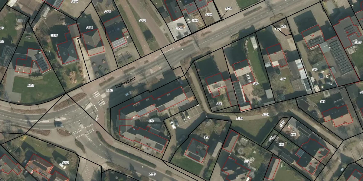Donkstraat 16 is gelegen op kadastraal perceel BKL05N670. Deze kadastrale aanduiding is uniek en wordt gebruikt door het Kadaster om eigendomsrechten en andere zakelijke rechten vast te leggen. Het perceel maakt onderdeel uit van de kadastrale gemeente Boekel.