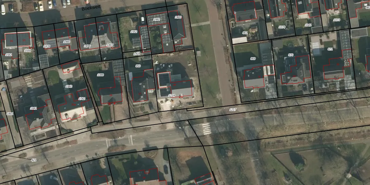 Gebruik de zoekbalk of klik op een perceel voor informatie over de adressen binnen dit perceel.