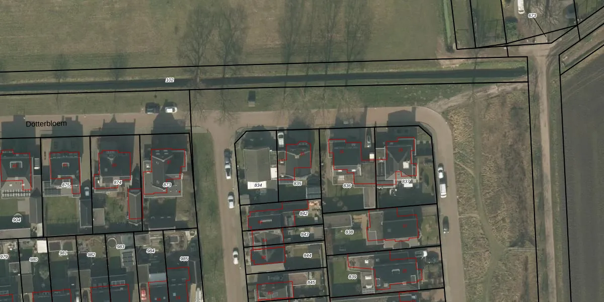 Gebruik de zoekbalk of klik op een perceel voor informatie over de adressen binnen dit perceel.