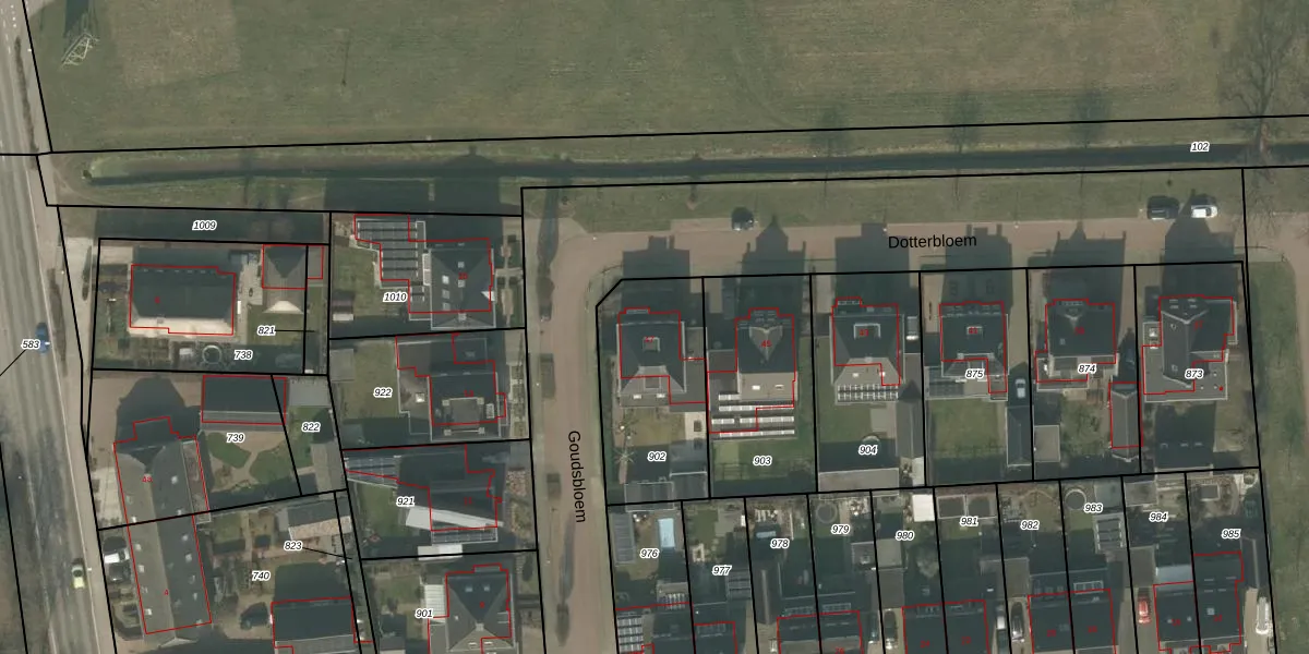 Het perceel waarop Dotterbloem 47 staat heeft een oppervlakte van 545 m². Dit is een groot perceel. De perceeloppervlakte wordt geregistreerd door het Kadaster. Gedetailleerde informatie over de maten van dit perceel kunt u vinden in het rapport Kadastrale kaart met maatvoering van Dotterbloem 47.
