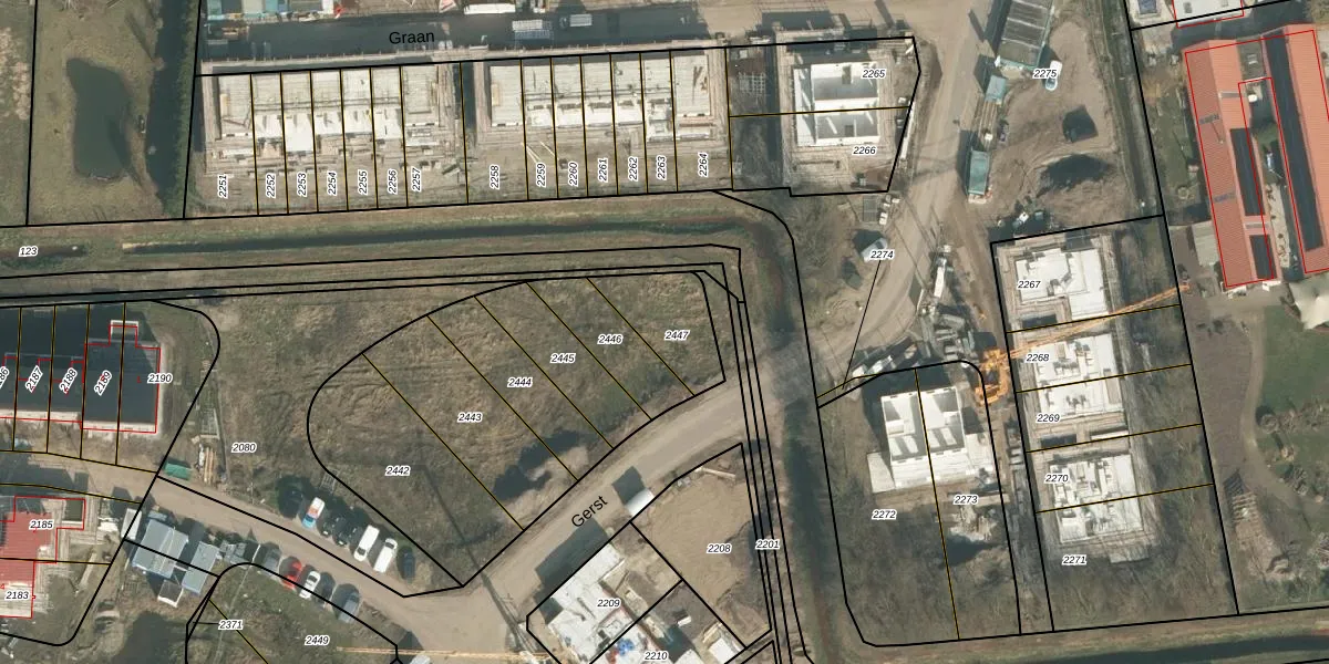 Het perceel waarop Gerst 5 staat heeft een oppervlakte van 202 m². Dit is een middelgroot perceel. De perceeloppervlakte wordt geregistreerd door het Kadaster. Gedetailleerde informatie over de maten van dit perceel kunt u vinden in het rapport Kadastrale kaart met maatvoering van Gerst 5.