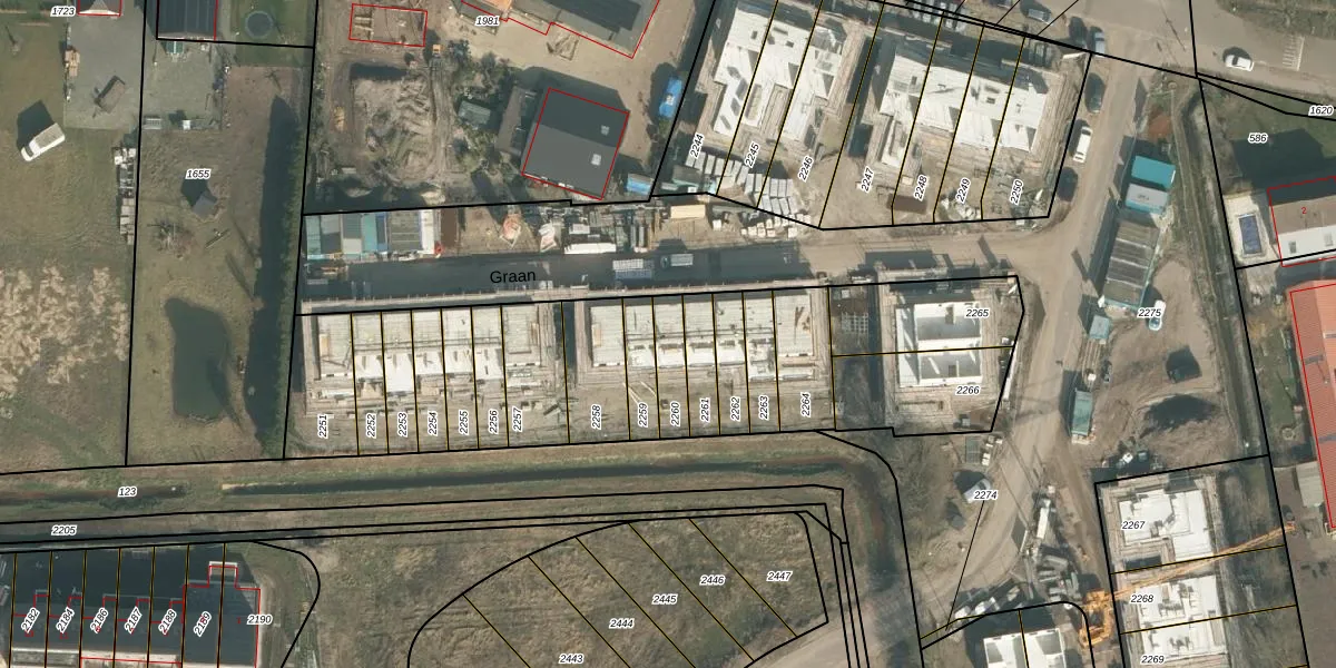 Het perceel waarop Graan 10 staat heeft een oppervlakte van 97 m². Dit is een klein perceel. De perceeloppervlakte wordt geregistreerd door het Kadaster. Gedetailleerde informatie over de maten van dit perceel kunt u vinden in het rapport Kadastrale kaart met maatvoering van Graan 10.