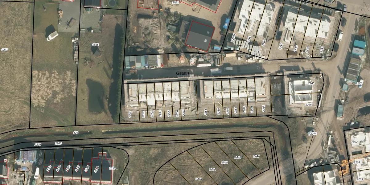 Het perceel waarop Graan 16 staat heeft een oppervlakte van 197 m². Dit is een middelgroot perceel. De perceeloppervlakte wordt geregistreerd door het Kadaster. Gedetailleerde informatie over de maten van dit perceel kunt u vinden in het rapport Kadastrale kaart met maatvoering van Graan 16.