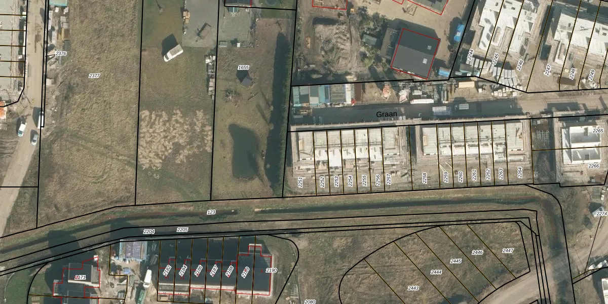 Het perceel waarop Graan 28 staat heeft een oppervlakte van 213 m². Dit is een middelgroot perceel. De perceeloppervlakte wordt geregistreerd door het Kadaster. Gedetailleerde informatie over de maten van dit perceel kunt u vinden in het rapport Kadastrale kaart met maatvoering van Graan 28.