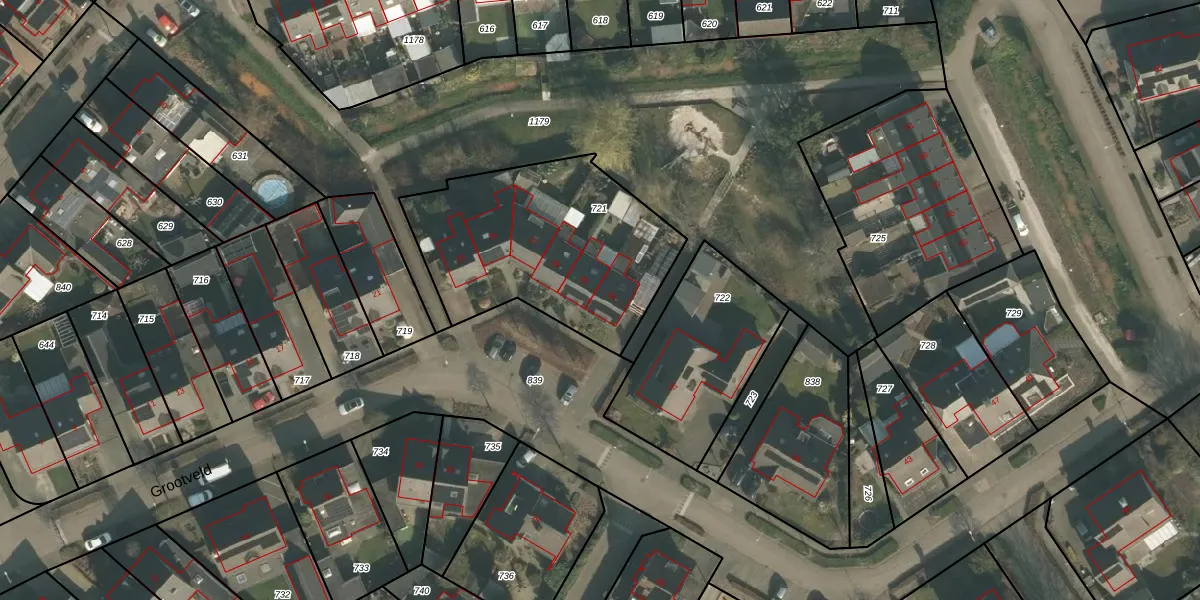 Het perceel waarop Grootveld 33 staat heeft een oppervlakte van 981 m². Dit is een groot perceel. De perceeloppervlakte wordt geregistreerd door het Kadaster. Gedetailleerde informatie over de maten van dit perceel kunt u vinden in het rapport Kadastrale kaart met maatvoering van Grootveld 33.