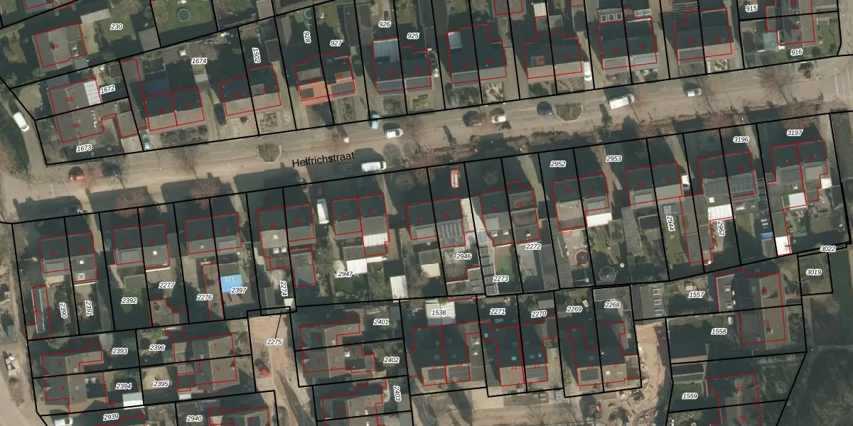 Het perceel waarop Helfrichstraat 47 staat heeft een oppervlakte van 1015 m². Dit is een zeer groot perceel. De perceeloppervlakte wordt geregistreerd door het Kadaster. Gedetailleerde informatie over de maten van dit perceel kunt u vinden in het rapport Kadastrale kaart met maatvoering van Helfrichstraat 47.