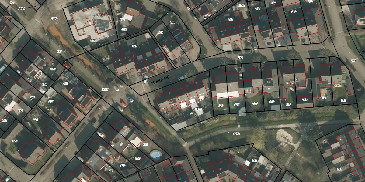 Het perceel waarop Hoogveld 16 staat heeft een oppervlakte van 757 m². Dit is een groot perceel. De perceeloppervlakte wordt geregistreerd door het Kadaster. Gedetailleerde informatie over de maten van dit perceel kunt u vinden in het rapport Kadastrale kaart met maatvoering van Hoogveld 16.