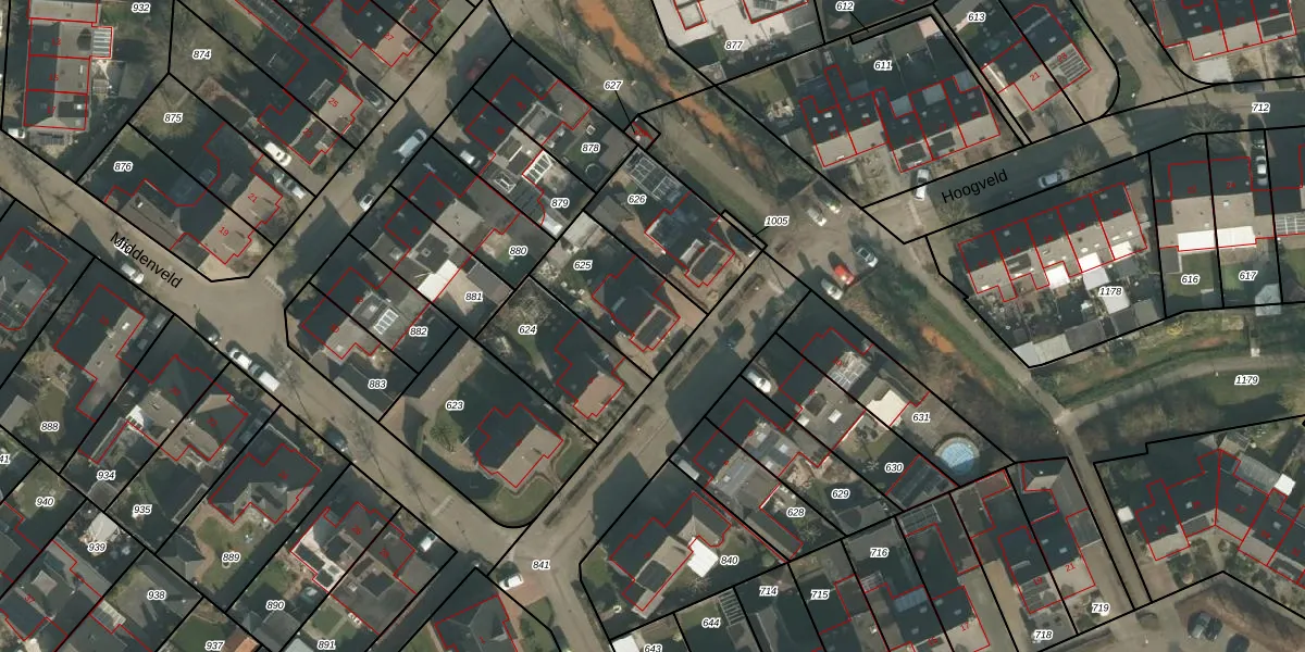 Het perceel waarop Hoogveld 7 staat heeft een oppervlakte van 326 m². Dit is een groot perceel. De perceeloppervlakte wordt geregistreerd door het Kadaster. Gedetailleerde informatie over de maten van dit perceel kunt u vinden in het rapport Kadastrale kaart met maatvoering van Hoogveld 7.