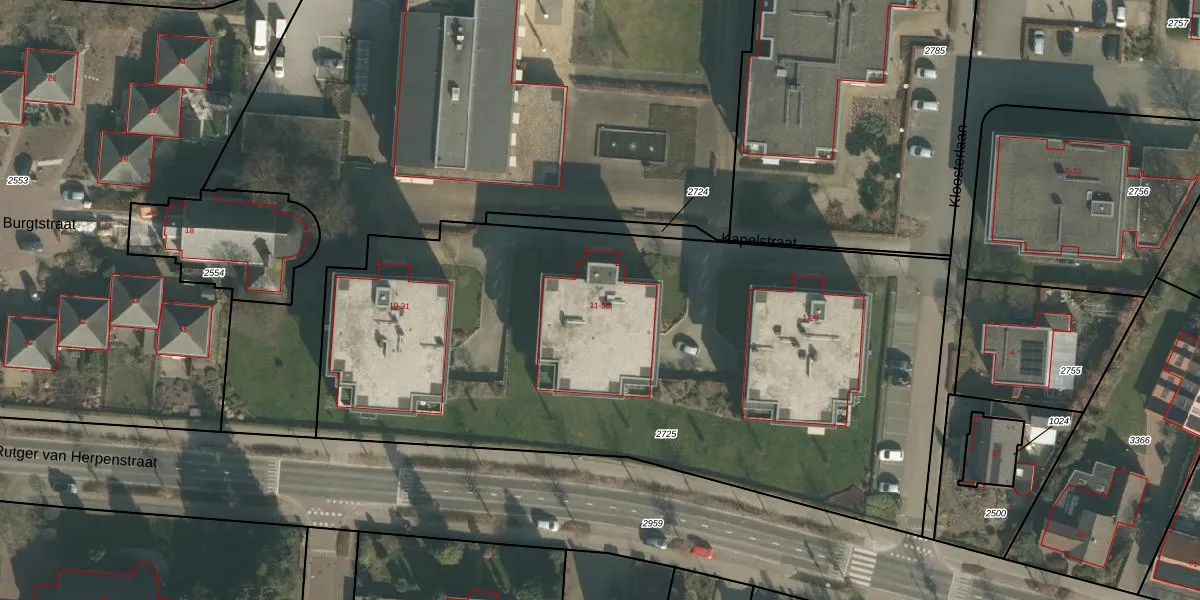 Het perceel waarop Kapelstraat 14 staat heeft een oppervlakte van 3960 m². Dit is een zeer groot perceel. De perceeloppervlakte wordt geregistreerd door het Kadaster. Gedetailleerde informatie over de maten van dit perceel kunt u vinden in het rapport Kadastrale kaart met maatvoering van Kapelstraat 14.