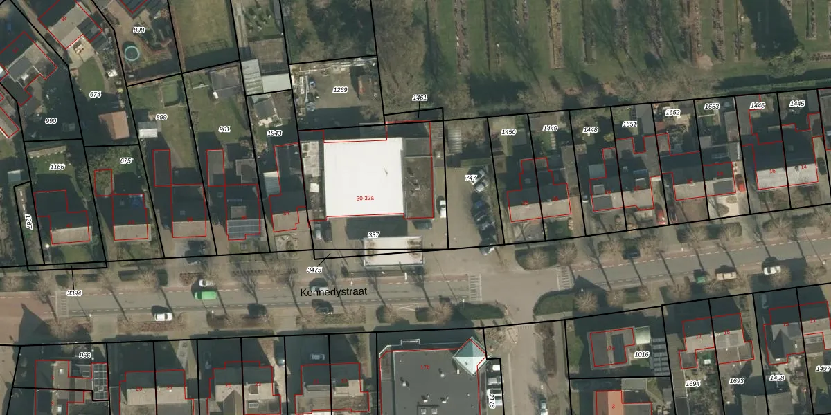 Het perceel waarop Kennedystraat 30 staat heeft een oppervlakte van 1005 m². Dit is een zeer groot perceel. De perceeloppervlakte wordt geregistreerd door het Kadaster. Gedetailleerde informatie over de maten van dit perceel kunt u vinden in het rapport Kadastrale kaart met maatvoering van Kennedystraat 30.