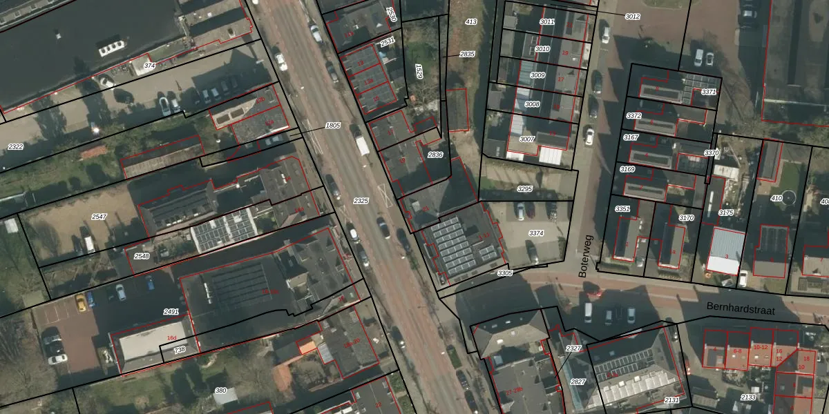 Gebruik de zoekbalk of klik op een perceel voor informatie over de adressen binnen dit perceel.